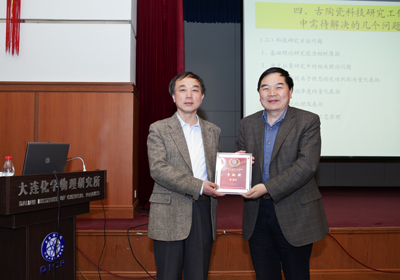 报告结束后,包信和院士代表大连化物所为苗建民赠送了大连化物所文化讲坛贡献奖奖牌,并在最后的总结讲话中将古陶瓷的胎体与彩釉之间的相互作用和多孔材料的科学问题进行了极其有趣的类比和联想,令在场听众受益匪浅。