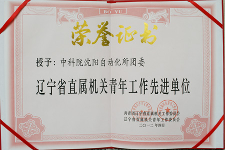 近日,共青团辽宁省直属机关工作委员会、辽宁省直属机关青年工作委员会评选出2011年度33家辽宁省直属机关“青年工作标兵单位”、“青年工作先进单位”,39名“优秀青年工作者标兵”和“优秀青年工作者”。沈阳自动化研究所被评为“辽宁省直机关青年工作先进单位”,所团委书记刘洋被授予“优秀青年工作者”。