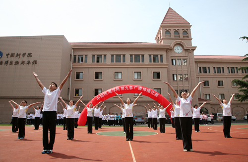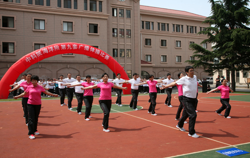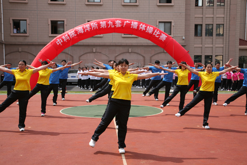 为贯彻落实国务院颁布的《全民健身条例》,广泛开展职工健身活动,丰富体育健身活动的内容和形式,推动全所职工的健身热情,海洋研究所5月29日举行了第九套广播体操比赛。所长孙松、党委书记王启尧,副所长杨红生、王凡应邀观看了比赛。