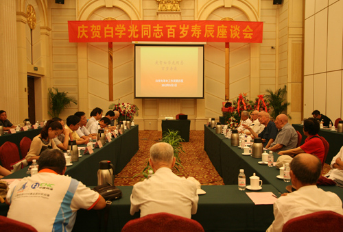 9月3日,中科院海洋所离休干部、老红军白学光同志百岁寿辰座谈会和百岁寿宴在黄海饭店举行。