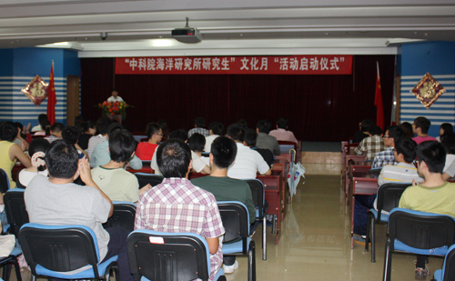 学生会代表方海超首先宣读了“文化月”活动《倡议书》。此次“文化月”活动旨在弘扬海洋所文化深厚内涵,培养创新意识,提高人文素养,丰富研究生课余生活,学生会各部门将在研究生部的指导下举办“学术交流会”、“茶艺文化沙龙”、“座谈海洋文化”、“音乐欣赏会”、“赞美祖国美术作品展”等一系列的文化活动,并成立书画协会和羽毛球协会,组织研究生开展丰富多彩的文体活动。
