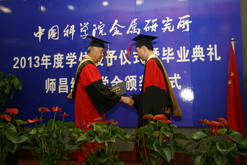 在欢庆建所60周年的喜庆日子里,6月9日金属所2013年度毕业典礼、学位授予和师昌绪奖学金颁奖仪式在所文化路园区学术报告厅隆重举行。所学位评定委员会委员、导师代表和2013年度毕业生以及他们的亲友近400人出席了典礼。