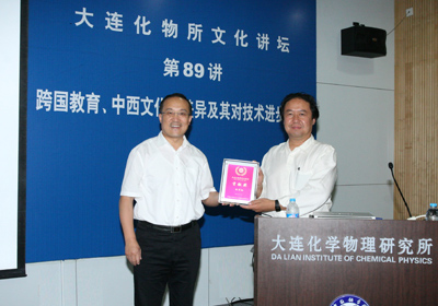 报告结束后,大连化物所职工和研究生就相关感兴趣的问题与祝京旭展开了热烈的讨论。张涛代表该所向祝京旭颁发了“大连化物所文化讲坛贡献奖”奖牌。