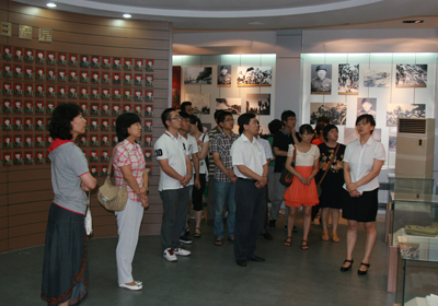 刚下车,大连市光荣院院长徐瑞芳迎接了大连化物所一行,王华代表所党委向光荣院赠送了慰问品。简短的仪式过后,全体人员来到光荣院的荣誉室参观,观看了光荣院历史的视频介绍。之后在讲解员的带领下,大家依次观看了多位老革命功臣传奇经历的图文展示和物品展览。从曾经为共和国浴血奋战、流血牺牲的年轻战士,到现在体味晚年幸福生活的安详老人,让大家真切体会到老革命功臣为祖国和人民解放做出的伟大贡献,让大家感到爱国不是一句空话,而是当祖国需要的时候挺身而出的勇气。当来到一整面有全体老革命功臣和烈属照片组成的荣誉墙时,大家的心灵为之一震,这更让大家感到和平年代的来之不易。