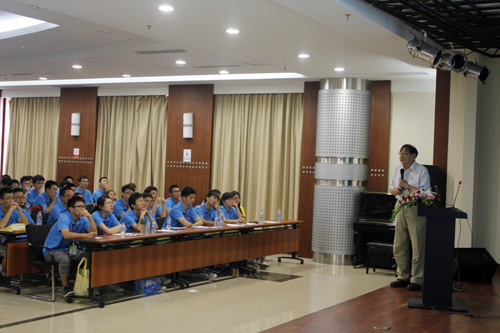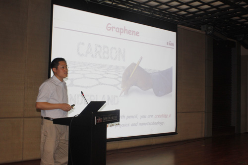 开营仪式上,年过八旬的柯伟院士为同学们作了题为“深闺待嫁镁合金”的报告。报告通俗易懂,生动有趣,开拓了营员的视野,加深了大家对镁合金的理解。报告会上,徐坚研究员作了“科学 科学家 材料科学”的报告,任文才研究员作了“石墨烯:丰富多彩的二维晶体”的报告。报告中没有死板的定义、生涩的术语,只有PPT中一幅幅精美的图片;报告会上没有严格的师生界线、专家的威严,只有报告人与营员之间良好地互动和交流。