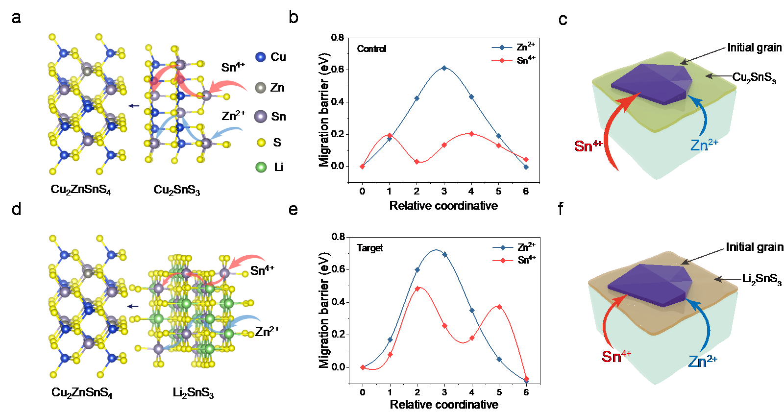 近日,青岛能源所固态能源系统技术中心在崔光磊研究员带领下,由邵志鹏、崔长城博士等围绕CZTSSe光伏硒化相变过程中“金属离子迁移不可控”这一核心技术难题,提出了Li₂SnS₃界面相平衡调控金属离子迁移、进而辅助晶粒相变生长的新机制,攻克了CZTSSe光伏相变不可控制、开路电压偏低、光电转换效率不足等系列科学与技术难题。