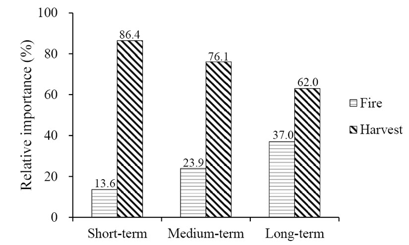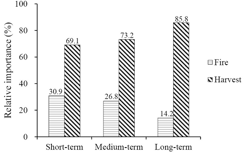 图2. 林火和采伐对大兴安岭森林地上碳储量的影响