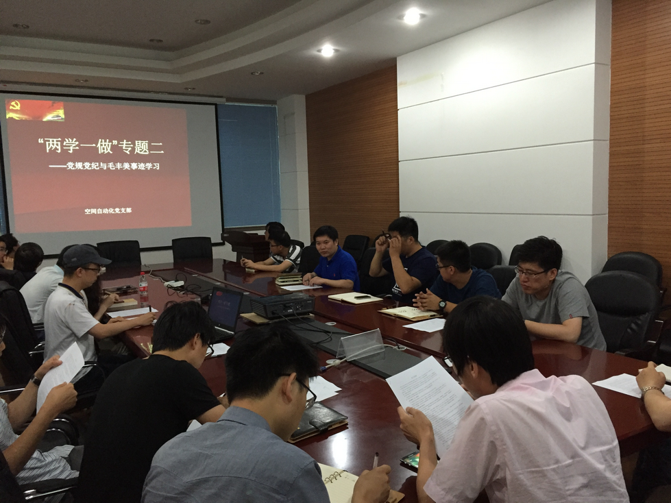 通过此次“两学一做:学党规,树党纪”的专题学习,全体党员牢记党的纪律,树立了更加崇高的道德标准,纷纷表示要在今后的工作和生活中严格以党的思想和标准约束自己,做合格党员,做模范党员。(空间自动化技术研究室
