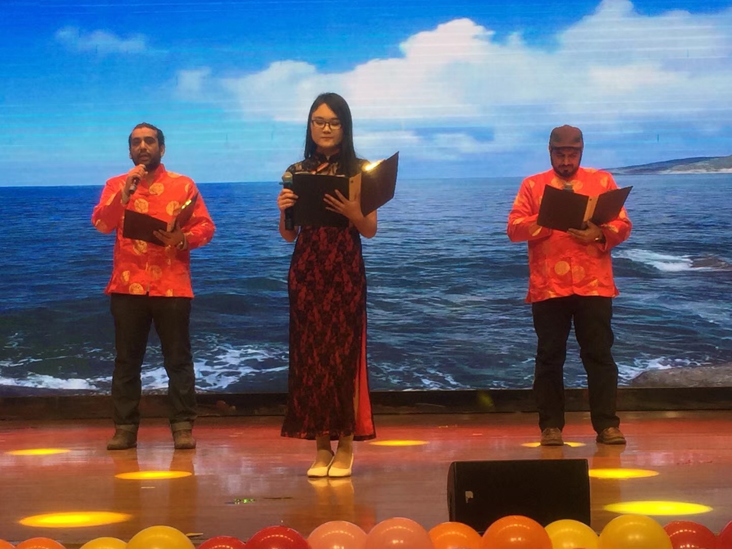 由大连化物所带来的新疆舞《我爱的人儿在新疆》拉开了联欢会的序幕。整台联欢会由17个文艺节目组成,集舞蹈、歌曲、相声、小品、诗朗诵、歌舞剧等于一体,形式多样。独唱《天边的骆驼》深情悠扬,二重唱《You raise me up》激昂高亢,《原乡人》、《月亮代表我的心》甜美醉人,乐队歌曲串烧嗨翻全场,小朋友们的歌舞表演活泼可爱;歌舞剧《多彩办公室》,舞蹈《时代在召唤》、《Panama》展现出研究所职工和学生朝气蓬勃、积极向上的精神风貌;相声《科研女博士》、视频歌曲《生科的意义》、《三句半》、小品《租个女友回家过年》、歌舞剧《年代秀》以诙谐幽默的方式讲述了科研工作者对工作、生活和人生经历的感悟以及对美好前程的展望;由八段锦爱好者带来《八段锦表演》、留学生代表带来的诗朗诵《面朝大海春暖花开》气势磅礴,赢得了台下观众的阵阵掌声,将祥和的节日气氛推向高潮。最后,晚会在以“爱”为主题的歌曲串烧中落下帷幕,通过现场观众投票产生了观众最喜欢的优秀节目,并在晚会进行了现场表彰。整台联欢会内容丰富,形式新颖,气氛热烈,精彩纷呈。大家在欢声笑语中辞旧迎新,扬帆起航,续写新的篇章。(文/王琳 图/研究所)