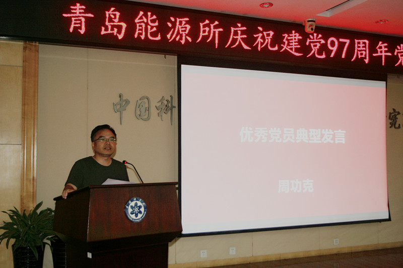优秀共产党员周功克同志做了典型发言,分享了一名优秀党员和科研工作者立足科研、艰苦创业、勇创佳绩的先进事迹和心得体会,为全体党员树立了学习榜样。