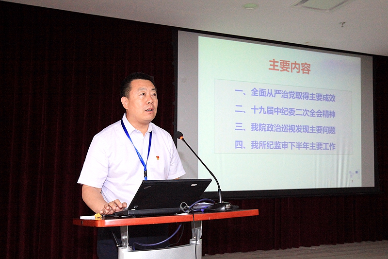 党委副书记、纪委书记毕伟同志作了题为《发挥政治巡视作用,不断推进全面从严治党向纵深发展》的党风廉政专题党课报告,详细阐述了我国全面从严治党取得的主要成效,传达了十九届中纪委二次全会精神,内部通报了我院政治巡视发现的主要问题,并对研究所下半年纪监审工作进行了部署。