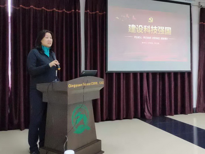 为结合科技创新实际,贯彻落实院党组关于在全院深入开展“讲爱国奉献、当时代先锋”主题活动的要求,中国科学院沈阳应用生态研究所科技资财检测党支部于9月29-30日前往清原森林生态系统观测研究站(清原站)开展主题党日活动。沈阳生态所党委委员、所长朱教君作为联系支部的所党委委员做专题党课报告,支部20余名党员参加了此次活动。沈阳分院分党组成员、副院长马越红,沈阳分院党办副主任刘旭东,省科技厅成果转化与奖励处副处长杨晓勇受邀参加活动;沈阳生态所党办主任胡志斌、副主任宗文君列席参加活动。
