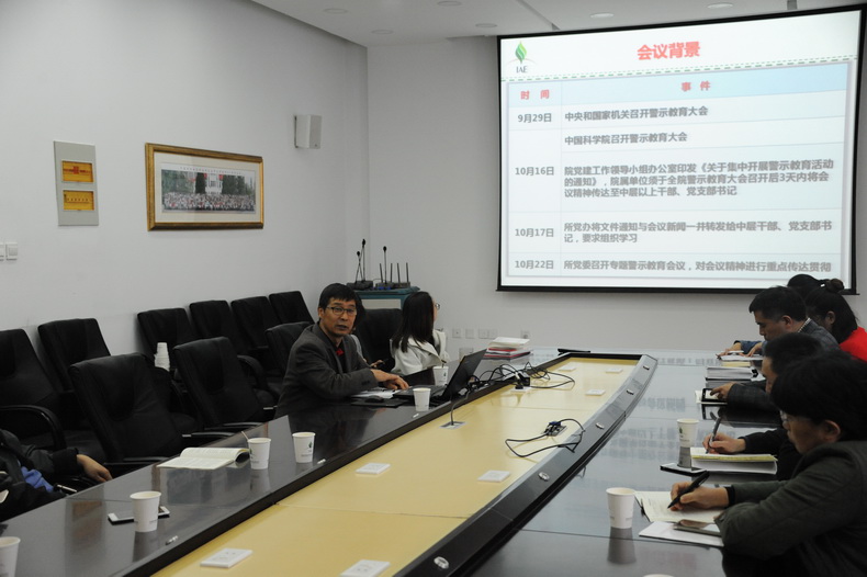 为了进一步促进广大党员、职工对党中央全面开展警示教育深刻意义的认识,在10月17日向各党支部和广大党员以文件形式传达中国科学院警示教育大会精神的基础上,10月22日,中国科学院沈阳应用生态研究所组织召开传达院警示教育活动精神学习传达会,研究所党委委员、纪委委员、党(总)支部书记、中层干部参加会议。会议由沈阳生态所党委书记金昌杰主持。