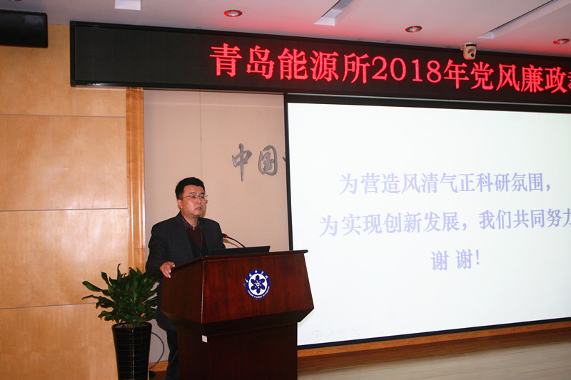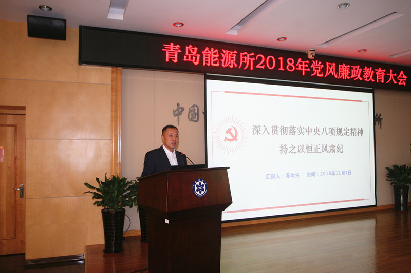 按照中科院党建工作领导小组办公室关于集中开展警示教育活动通知文件精神、根据研究所党风廉政建设责任制实施细则要求,111日,中国科学院青岛生物能源与过程研究所召开2018年党风廉政教育大会,研究组负责人、管理支撑部门负责人、管理部门全体人员、研究组财务助理等共计一百余人参加会议。党委副书记、纪委书记冯埃生做专题报告,党委书记彭辉到会并讲话。会议由纪委副书记张瑞东主持。