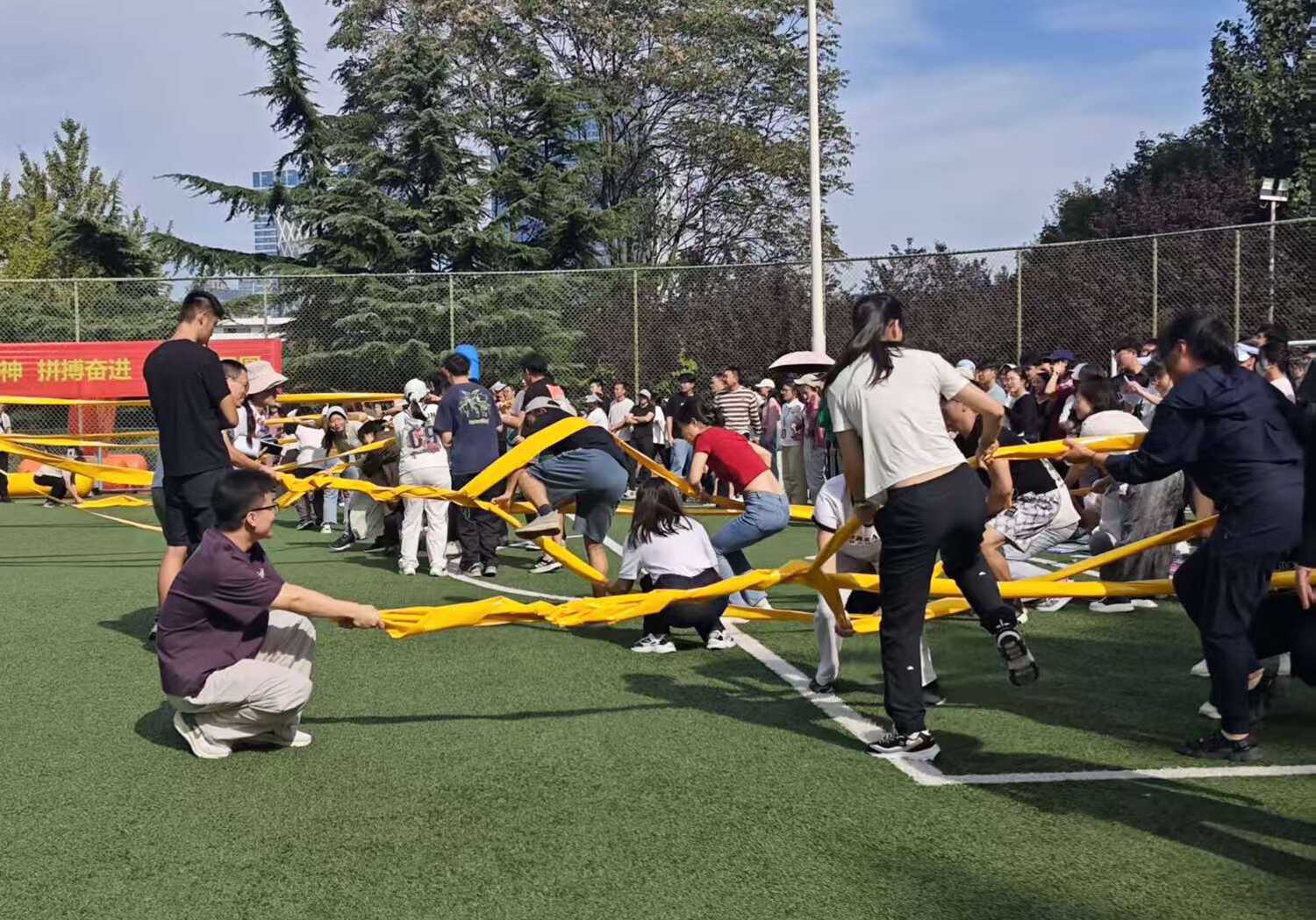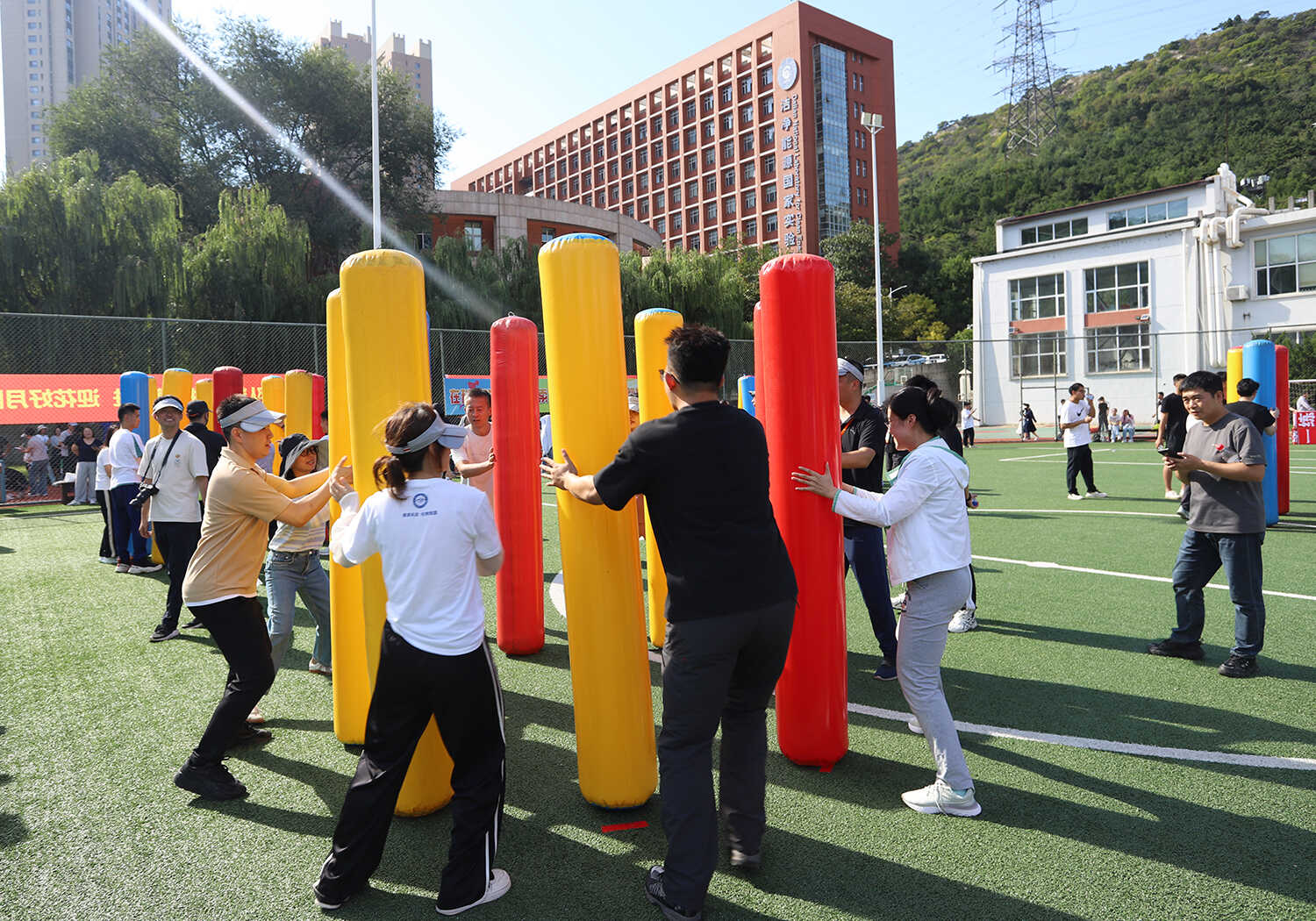 赛事活动分别在A、B两个场地同时火热开赛,其中A场地以团体赛为主,B场地以个人赛为主。本次活动精心设置了集竞技性、协作性与趣味性于一体的“齐心协力”“开心麻花”等9个项目,吸引了19支队伍(联队)参与,涵盖科研、职能部门的老中青职工和研究生。赛场上,运动员们全情投入,团结协作,为团队荣誉奋力拼搏;赛场边,观众们的加油声、欢呼声、笑声此起彼伏,整个运动场沉浸在一片欢乐、热烈、奋进的海洋中。经过半天的激烈角逐,各项赛事圆满结束。