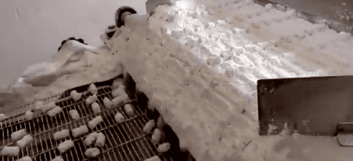 滚啊滚,抖落身上多余的粉...再经过质检和包装,最后就是我们内敛朴实的甜蜜担当——棉花糖啦~