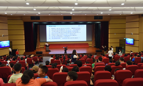 报告中,刘开周通过自己四年里7次深潜的经历,生动形象地与大家分享了奇妙的海底世界和一些鲜为人知的海试背后故事,缓缓掀起“蛟龙号”的神秘面纱。“中国‘蛟龙号’载人潜水器顺利到达7062米深的海底,在世界载人深潜的榜首刻下了中国人的名字,是世界同类型载人潜水器的最大下潜深度,这是中国人的骄傲”,刘开周的报告不时赢得现场阵阵掌声。报告结束后,刘开周与听众们进行了趣味互动,“地面与太空和深海对话时,哪种时间快” ?面对提出的问题,孩子们踊跃举手回答,气氛十分热烈,其中也不乏一些家长给出了非常专业的答案。本次报告会使广大学生开阔了眼界,增长了知识面,对于从小树立热爱科学的精神营造了良好的社会氛围。