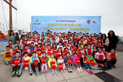 由青岛市教育局、青岛市科技局、中国科学院海洋研究所、中国海洋湖沼学会、青岛晚报共同主办的第十届青岛市中、小学生“我心目中的海洋”主题绘画活动在青岛银海大世界成功举办。本次活动共吸引了全市30多所学校的110多名中小学生积极参与,孩子们在百米长卷上挥毫泼墨,用五彩缤纷的画笔描绘出自己心目中的海洋世界。海洋所纪委书记毕伟、著名油画家潘文逸先生、青岛画报副总编崔燕女士等为获奖同学们颁奖。
