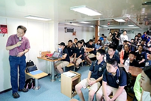 7月31日,中科院海洋生态与环境科学重点实验室主任俞志明研究员在“科学三号”科考船上举行了一场别开生面的科普活动——“还海岸一片洁净”,为参加此次活动的30余位中学生进行了有害藻华专题讲座,并带领同学们观摩、体验了改性粘土治理有害藻华的室内消除实验和现场喷洒作业过程。此次活动由青岛市教育局、青岛市科协、青岛出版集团、青岛旅游集团共同协办,国内包括中国国际广播电台、中国科学报、青岛电视台、“青岛蓝睛”、青岛日报、半岛都市报等多家新媒体平台对活动全程进行了直播和报道。