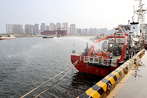 利用改性粘土专用喷洒设备模拟消除有害藻华的现场作业情况