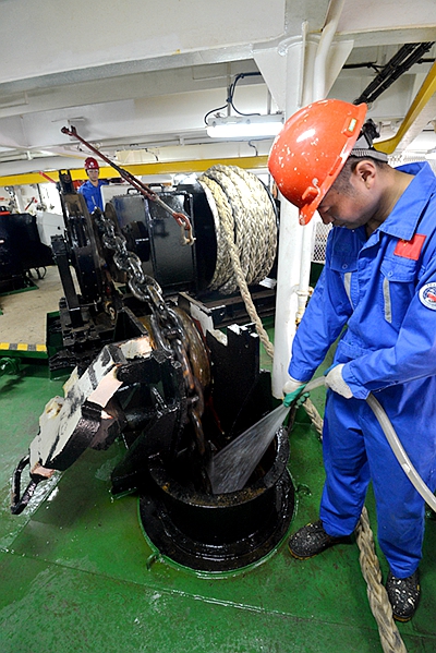 避风期间技术人员对设备进行维护