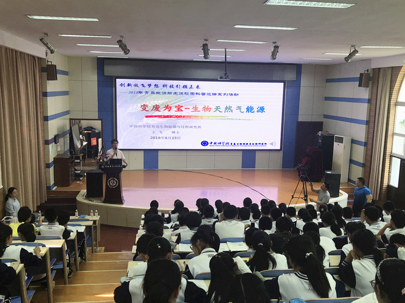 为确保以“创新放飞梦想、科技引领未来”为主题的系列校园科普巡讲活动持续有效开展,6月初,研究所积极组织策划进校园活动,由工业生物燃气研究组博士后王飞担任主讲人,于6月15日和6月22日,分别走进青岛五十三中和崂山育才小学,以“变废为宝-生物天然气能源”为主题,为近500名中小学生带来生动有趣的科普报告。