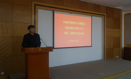 2018年12月12日,中国科学院留学人员联谊会沈阳分院分会第一次理事会全体会议在沈阳召开。沈阳分院分党组书记、副院长姬兰柱,分党组副书记、纪检组组长郭秀银,院长助理、办公室主任杨宏,组织人事处处长曲文生以及系统各单位代表参加会议。会议由郭秀银主持。
