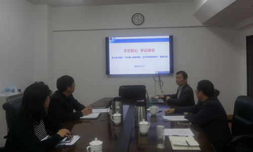 为了深入学习贯彻习近平新时代中国特色社会主义思想和党的十九大精神,按照2018年学习计划要求,12月27日,沈阳分院分党组理论中心组开展了专题学习活动,深入学习领会新时代中国共产党的初心和使命是“为中国人民谋幸福,为中华民族谋复兴”的重要论断。沈阳分院分党组成员、院长韩恩厚以《不忘初心、牢记使命》为题做了专题报告。分党组书记、副院长姬兰柱,分党组成员、副院长马越红,分党组副书记、纪检组组长郭秀银参加了学习会议。会议由姬兰柱主持。
