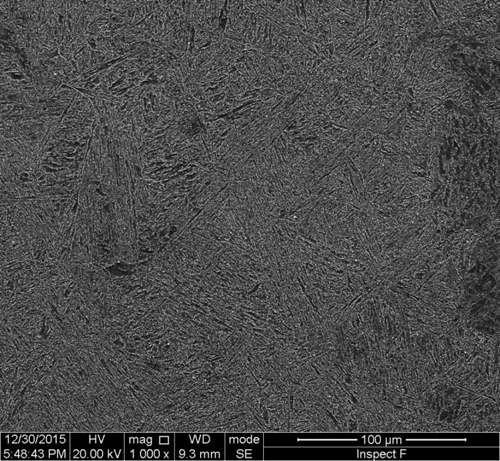 SIMP钢的制备是决定其性能的关键,其制备的难点主要有:难熔金属元素的熔解、超纯铁的制备、易活化元素含量的控制、成分均匀性控制、全部马氏体组织的获得等。自2011年,课题组相继完成了近百炉25公斤级实验室规模SIMP钢的冶炼,在SIMP钢的主元素和活化元素的控制以及钢的纯净化冶炼方面积累了丰富的研究经验。在2012年完成了500公斤级SIMP钢的冶炼,成分得到严格控制,其中S含量可低至5ppm。2013年对SIMP钢的成分进行了进一步的优化,并完成了1吨级SIMP钢的冶炼,同时为其它研究组提供了研究所需的焊接材料和管材。2014年完成了2吨级SIMP钢的冶炼,明确了铸锭在规模增大后可能产生的制备技术难点,如成分均匀性问题。在总结以上冶炼经验的基础上,于2015年9月采用真空感应+真空自耗的工艺方法成功完成了5吨级SIMP钢的第一轮冶炼。SIMP钢的制备过程由小到大的整个历程如图1所示。5吨级SIMP钢铸锭形貌如图2所示。化学成分分析结果表明,5吨级铸锭的主元素均为最佳成分点,S、P等杂质元素含量均控制在极低水平,Ni、Mo、Al、Nb、Ti、Co等各类活化元素的含量也均控制在极低水平。锻造和热处理后的显微组织形貌观察表明(图3),5吨级SIMP钢获得了全马氏体的目标组织,各项常规力学性能均优于核电目前用同类钢种T91钢。2016年1月完成了5吨级SIMP钢的第二轮冶炼,进一步完善和固化了SIMP钢的大规模冶炼工艺。