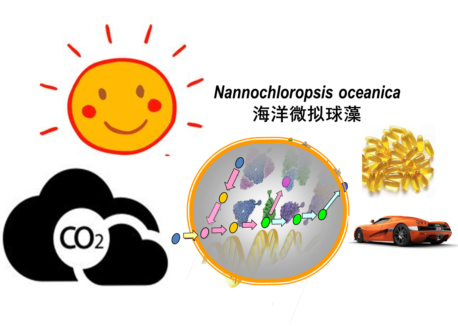 微拟球藻是一种可利用海水或淡水、在室外大规模培养的工业微藻,具有生长速度快、二氧化碳耐受能力强、强劲积累油脂和高值不饱和脂肪酸等优点,因此已经成为能源与经济微藻领域的研究模式藻种之一,也成为国内外许多微藻固碳示范工程的优先选择。然而反向遗传工程技术的匮乏从根本上阻碍了针对二氧化碳固定能力和产油效率等诸多工业性状的遗传改造。