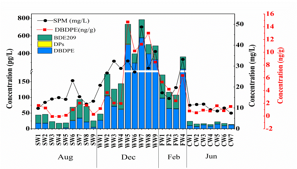 卤代阻燃剂(HFRs)是一类广泛应用于塑料、电子产品、纺织品、家具、建材等物品中人工合成类有机化合物。因其对生态系统和人的健康影响,HFRs中的五溴、八溴和十溴二苯醚先后被列入持久性有机污染物清单中受到管控,而一些新型替代品,如十溴二苯乙烷(DBDPE)和德克隆(DPs)的生产与使用量开始增加,并在环境中不断检出。山东莱州湾区域是我国最大的溴系阻燃剂(BFRs)生产基地之一。渤海是我国的内海,受人类活动影响强烈,溴系阻燃剂的污染问题也逐渐被引起重视。