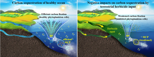 海洋巨大的碳汇能力在气候调控方面起着关键作用。然而,工业革命以来陆源输入是导致近海生态系统不断退化的重要原因之一,对海洋生态功能造成干扰和破坏。近来,一种新型陆源污染物-除草剂受到人们警惕。全球粮食供给日益严峻的形势下,在农业生产中除草剂的消耗量也与日俱增,并存在过量施用现象。当前全球市场上除草剂产品高达17000多种,年消费量超过300亿美金。事实上大量的除草剂通过河流、地下水、地表径流等途径最终进入海洋,导致近海除草剂污染问题在全球范围普遍发生。