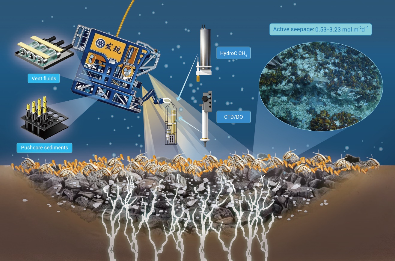 近日,国际地学刊物The Innovation Geoscience《创新地球科学》在线发表了中国科学院海洋研究所深海生态系统过程和健康评价课题组在南海冷泉甲烷原位探测研究中的最新进展。深海冷泉是海底甲烷排放的关键通道,长期以来,由于难以直接、准确地量化声学羽流分布和原位甲烷浓度等关键参数,全球海洋甲烷预算存在显著的不确定性。海洋所研究人员基于最新的深海原位探测与稳态模型发现南海冷泉的甲烷排放量远超想象,这一发现为海洋温室气体源汇核算提供了重要科学依据。