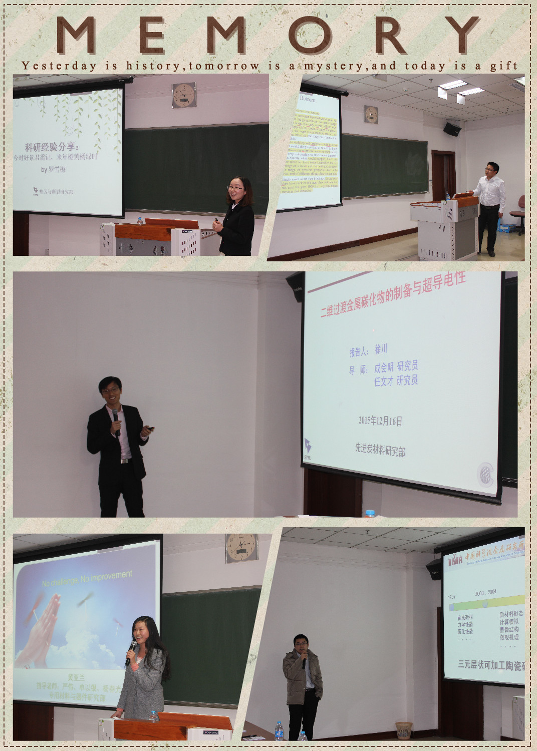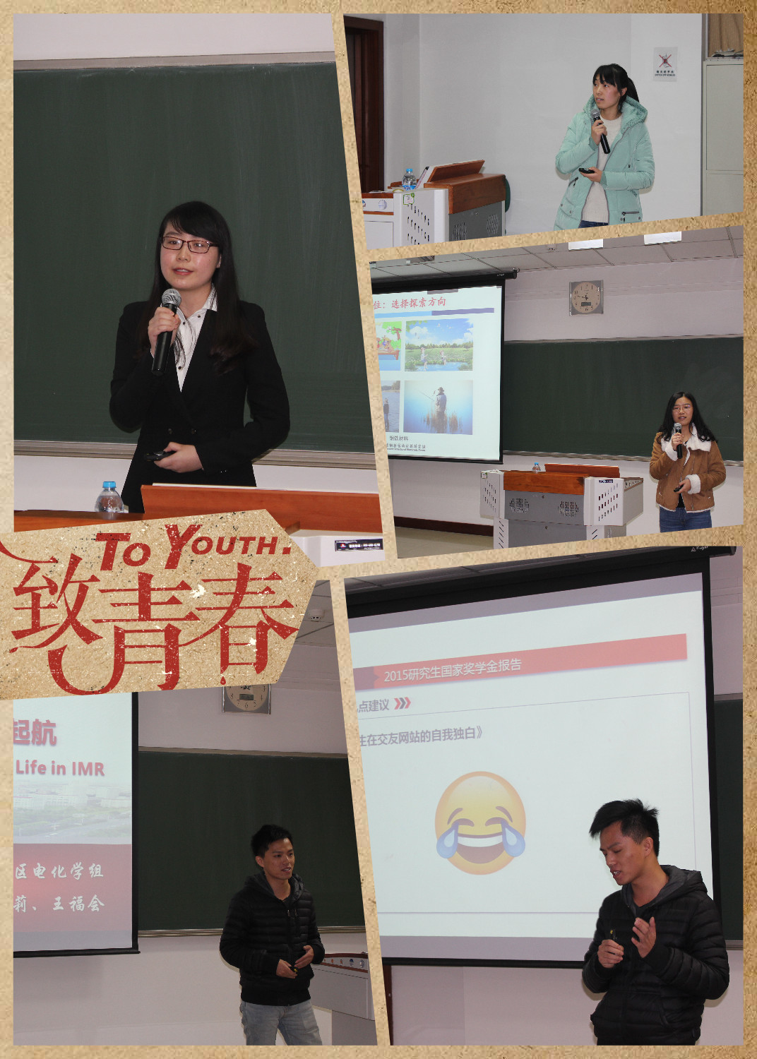 国奖报告会的大幕才刚刚拉开,金属所研究生部希望将此活动办成年度报告会,让我们共同期待未来有更多的同学站上这个舞台,一同分享属于他们的光荣与梦想。学霸是怎样炼成的,是坚定的人生信念,是执着的科研情怀,也是我们共同的材料报国梦!
