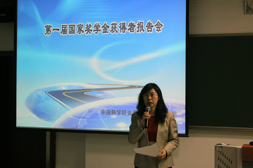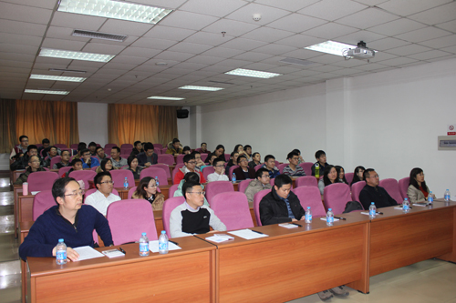 作为本场报告会的倡导者,张哲峰副所长深情致辞,张所长首先祝贺同学们取得的优异成绩,鼓励同学们重视自身科研能力、学术水平及应用实践能力的提高,并对广大研究生寄予深切厚望,也希望这个国奖报告平台能为更多的同学提供展示自己的机会。研究生部刘敏主任一一介绍了各位国奖获得者,也再一次为各位同学在各自领域所取得的傲人成绩表示衷心的祝贺。专用材料与器件研究部杨柯老师、高性能陶瓷材料研究部王京阳老师、磁性材料与磁学研究部的张志东老师分别应邀主持报告会。杨柯老师指出沟通交流在科研过程中的重要性,向有经验的老师、同学学习,博采众长,方能问鼎巅峰。王京阳老师道出了在场导师的共同感慨,王老师说:“今天的报告会让我们感受到同学们非常优秀,作为一名导师,也必须不断学习,和我们的学生共同成长进步。”张志东老师非常欣赏同学们充满激情的展示,指出金属所需要这份青春与活力。张广平、单以银、任文才、邰凯平、郑士健等导师、研究生部的老师及百余名同学一起出席报告会。