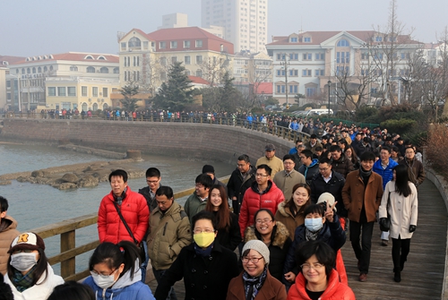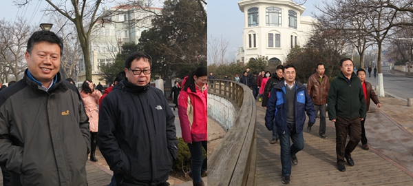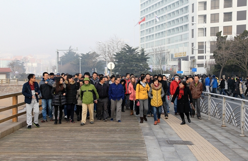 10点整,随着一声出发号令,大家从海洋所西门出发,迎着冬日的暖阳,沿着青岛八大关海边木栈道前行,至第二海水浴场花石楼后原路折返。一路上欢声笑语,大家神情愉悦、精神抖擞,迈着矫健的步伐,以自然有序的队列行走在沿海木栈道上,成为冬日里一道靓丽的风景。