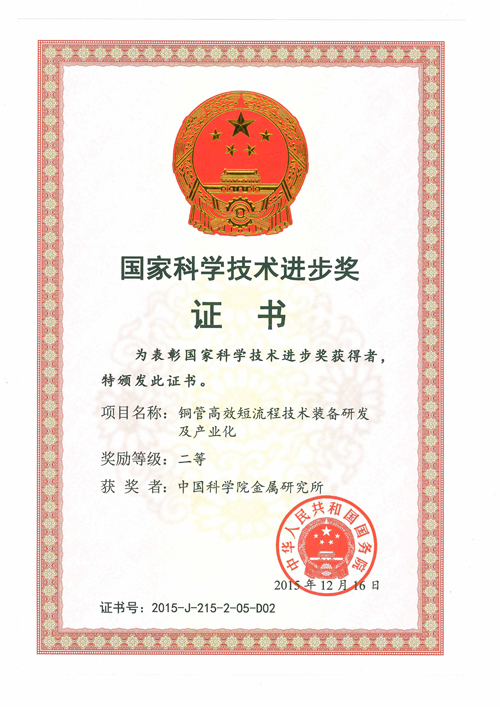 由金龙精密铜管集团(第1名)、中科院金属研究所(第2名)和北京科技大学(第3名)合作完成的科研成果“铜管高效短流程技术装备研发及产业化”在1月8日国家科技奖励大会上获得国家科技进步二等奖,金属所塑性加工先进技术课题组张士宏研究员(第2名)和博士后刘劲松(第8名)获得奖励。