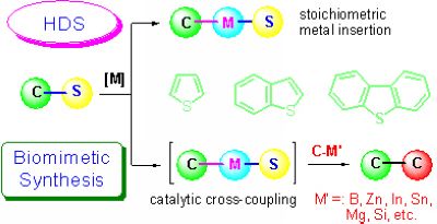 过渡金属促进惰性C-S键的催化活化与转化研究在有机合成与石油炼制工业中越来越受到重视。均相过渡金属化合物可以用于难脱硫有机硫化物如噻吩、苯并噻吩和二苯并噻吩等的C-S键断裂机理研究。使过渡金属促进的有机硫化物的反应能在催化条件下进行将有利于开发新的更高效的石油深度加氢脱硫(HDS)炼制工艺技术以及发展生物模拟有机合成新方法学。本综述总结了近年来过渡金属化合物对惰性C-S键的插入反应研究以及过渡金属促进的经由C-S键活化的交叉偶联反应研究成果。大连化物所的其他相关研究成果也受到了相应的关注与述评。