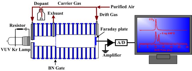 目前,离子迁移谱是现场快速检测痕量爆炸物的主要方法,然而,传统放射性电离源限制了离子迁移谱的推广应用,迫切需要研制开发高电离效率、结构简单、性能稳定的非放射性电离源。