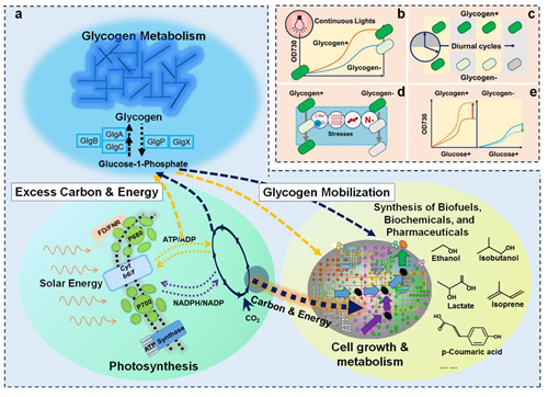 图1. 蓝细菌糖原代谢的生理和代谢功能