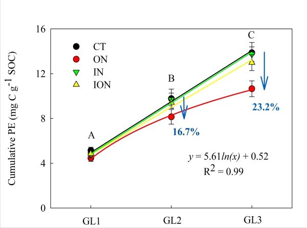 本研究强调了外源碳输入量以及氮沉降的形态在调控土壤有机质激发效应中的重要作用。这一系列研究成果有助于揭示土壤有机质激发效应的碳氮耦合规律,为构建全球氮沉降条件下区域尺度的碳循环模型提供数据支持及理论基础。