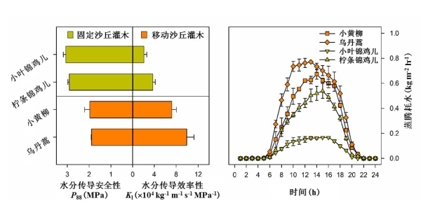而固定沙丘灌木小叶锦鸡儿和柠条锦鸡儿具有较高的水分传导安全性,采取“保守型”的水分利用策略。