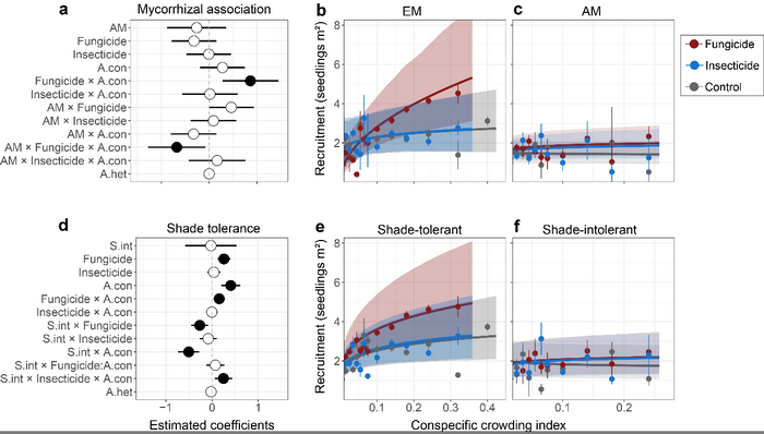 图2 . 病原真菌、昆虫及树种生活史策略共同调控同种密度制约效应