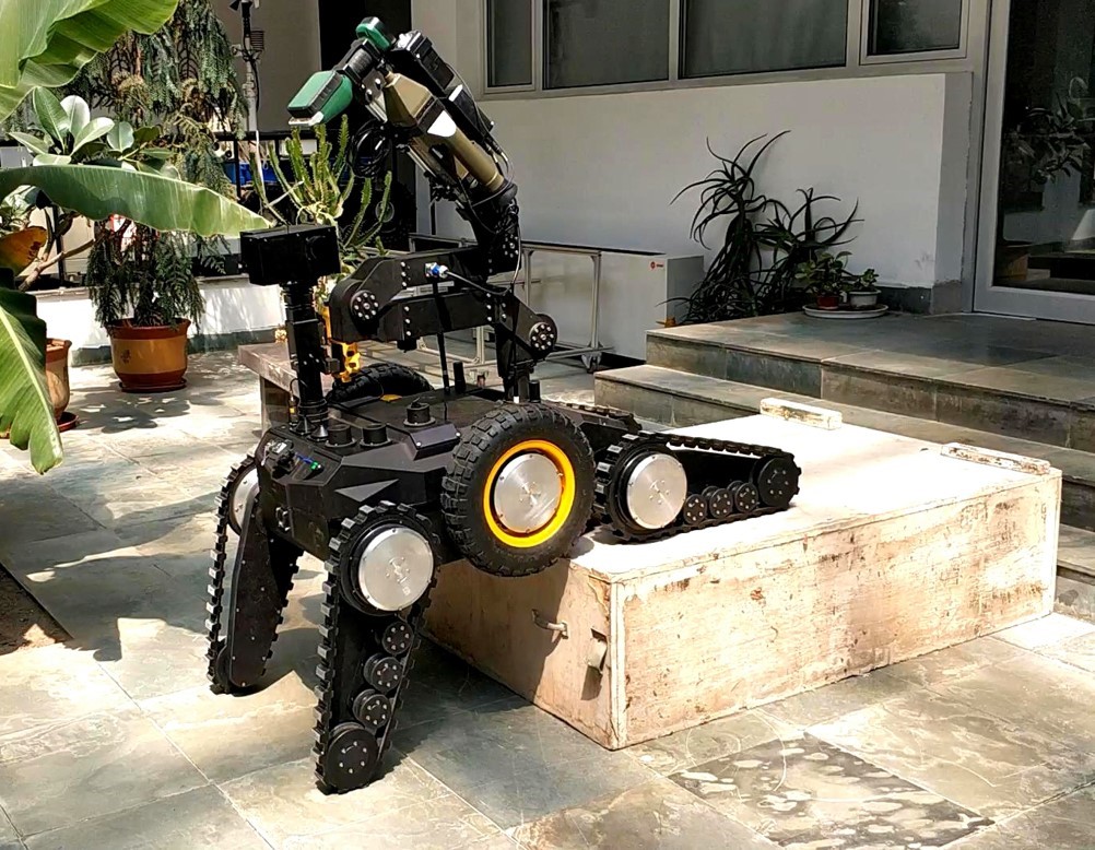 针对复合移动方式给机器人的控制算法提出的较高要求,排爆机器人课题组科研人员提出了一种自适应非线性控制算法(ANC)。该算法首先根据机器人动力学模型和卡尔曼滤波算法进行机器人状态估计,并在非线性串级控制器的基础上提出一种自适应调节算法和自适应零偏角度辨识算法,能够根据机器人的状态实时动态调整控制器的参数,以获得更好的控制效果。