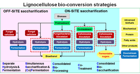 木质纤维素生物质具有替代化石资源的巨大潜力,从而有效缓解了全球对原油的依赖。虽然目前国内外已有一些纤维素乙醇等木质纤维素产品问世,但与化石来源的产品相比,木质纤维素产品迄今为止大多仍不具备市场竞争力,因此亟需提高木质纤维素转化技术的经济性。木质纤维素转化主要包括预处理、酶解糖化以及发酵三个步骤,其中糖化被认为是木质纤维素生物转化可行性的决定性因素。为此,青岛能源所崔球研究员带领的代谢物组学研究组另辟蹊径,提出了基于纤维小体全菌催化剂的木质纤维素“整合生物糖化”(简称CBS)策略,并在2020年2月24日上线的综述文章中系统阐述了该策略的研究现状、技术优势,以及未来需要解决的问题和方向[Liu, Y.-J., et al., 2020 Consolidated bio-saccharification: Leading lignocellulose bioconversion into the real world. Biotechnol Adv doi: 10.1016/j.biotechadv.2020.107535],为木质纤维素生物转化的工业化实现提供了技术指引。