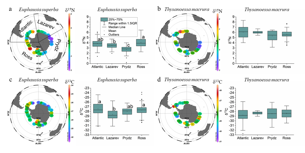 南极磷虾是南大洋高营养级生物的重要饵料,南大洋的渔业管理和保护是基于生态系统和食物网的尺度,这需要科研人员了解南大洋不同区域食物网的结构和差异。孙松团队该项研究还提供了第一份环南极南极磷虾同位素基底值,对于开展南大洋食物网结构及模型研究具有重要科学价值。