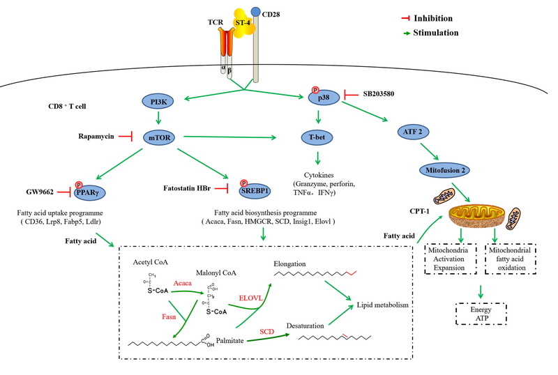 图2.超级抗原通过增强脂肪酸摄取和合成及提高线粒体能量代谢激活CD8+T细胞的信号通路