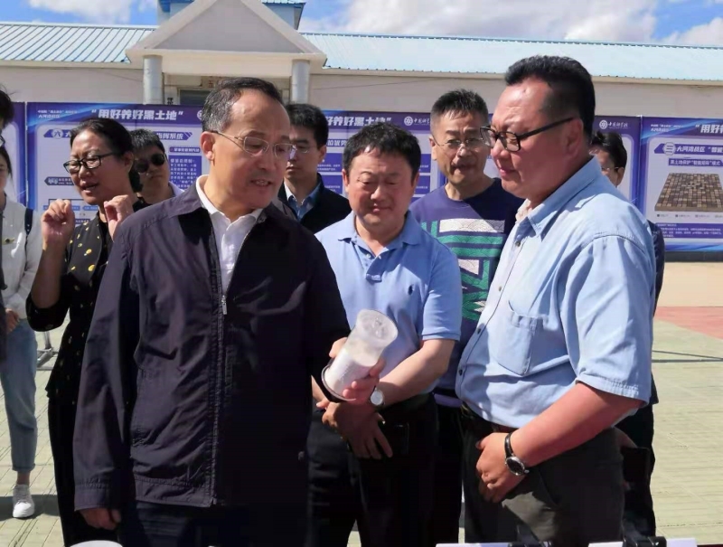 “黑土粮仓”科技会战(简称“黑土会战”)是中科院在系统总结“黄淮海”、“渤海粮仓”等农业科技攻关重大任务经验的基础上,针对东北地区黑土地退化严重等威胁国家粮食安全和生态安全的重大问题,充分利用长期科学研究和技术、数据积累,为农场建设、粮食增收而展开的又一项重大农业科技工程。为了更好的推进黑土会战的有序开展,6月17日,中国科学院张涛副院长、科发局农业科技办公室常务副主任王竑晟,黑土会战专项负责人、东北地理所姜明所长等专家组成员一行调研考察大河湾示范区。我所作为大河湾示范区模式一“漫坡漫岗黑土侵蚀阻控模式”示范任务的主持单位,由武志杰研究员带队的骨干成员一行7人参加了此次调研考察会议。