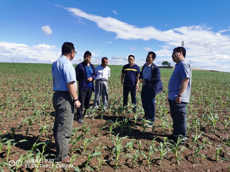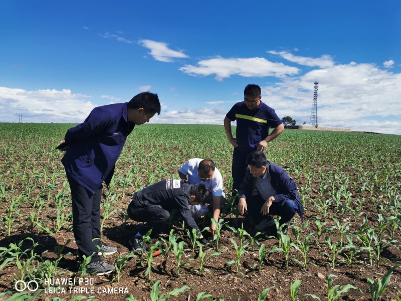 模式一团队骨干人员考察玉米田间长势情况