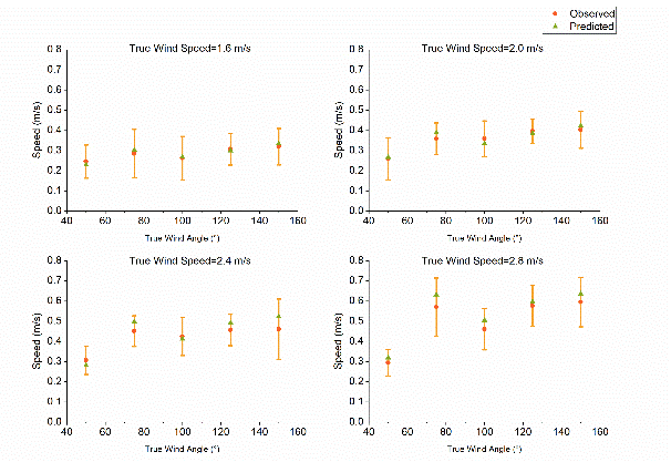 “海鸥”号无人帆船航速性能预测结果